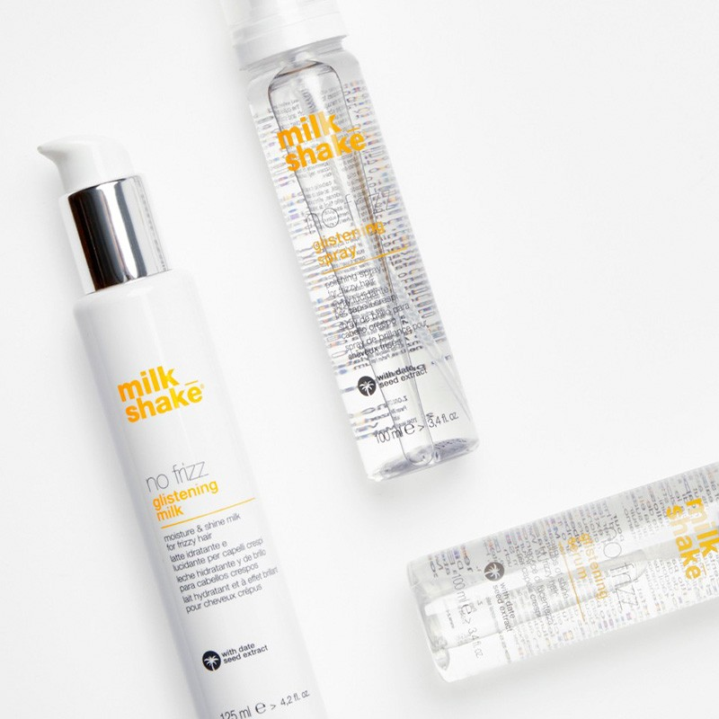 milk_shake glistening products contain date palm extract and crambe oil for soft, manageable hair and helps maintain optimal hydration. Leaves hair soft, vibrant and shiny.