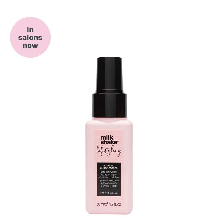 milk_shake lifestyling Amazing Curls & Waves is is an ultra-light spray that supports and defines curls. It also helps to create wavy styles, making them last longer. The next generation polymers have a film-forming action with a long-lasting result even when faced with extreme humidity. The special calibrated ingredients increase volume at the roots and help make the style last longer. The sealing action of the active ingredients repels moisture and pollutants and maximizes the hair’s shine.The unique formula contains apple, lemon and blueberry extracts with protective, invigorating, emollient and conditioning action as well as quinoa proteins with a color protection action to prevent color-fading, enhancing manageability and radiance.