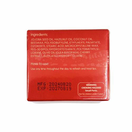 Other: Jojoba Seed Oil, Hazelnut oil, Coconut Oil, Beeswax, Polyisobutylene, Ethylhexyl Palmitate, Ozokerite, Stearic Acid, Microcrystalline Wax, PEG-30 Dipolyhydroxystearate, Polydimethylsiloxane, Olive Oil (OLEA EUROPAEA), Cherry Extract, Butylated Hydroxytoluene