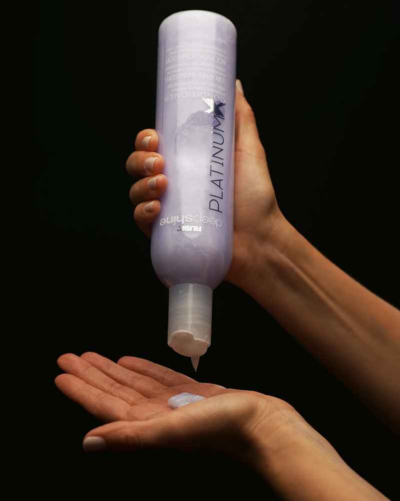 RUSK® Deepshine® PlatinumX Conditioner is a gentle, every day, non-stripping, conditioner that neutralizes yellow, boosts brightness, and eliminates brassiness.